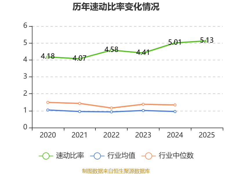 2025年,公司流动比率为5.78,速动比率为5.13。